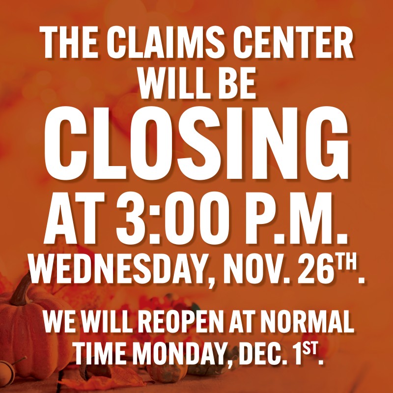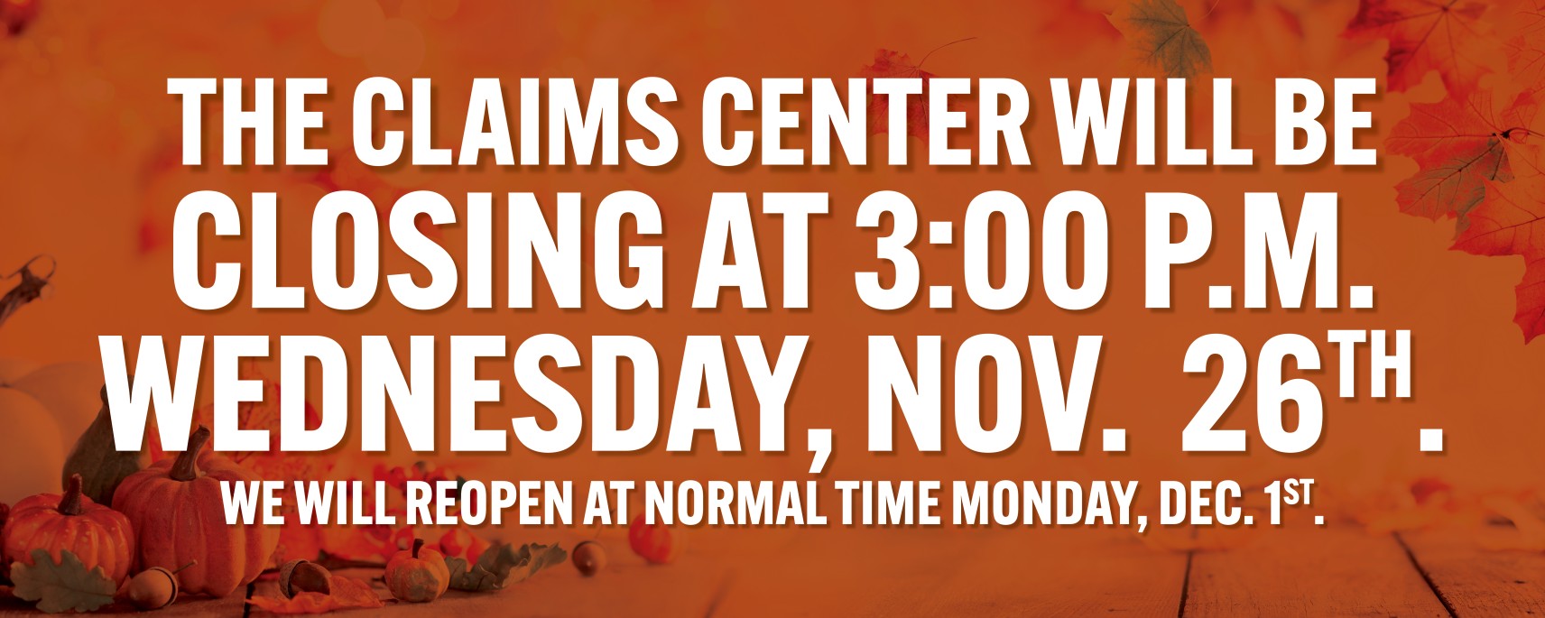 *Claim Center Hours: Monday - Friday, 8:00 a.m. - 5:00 p.m.