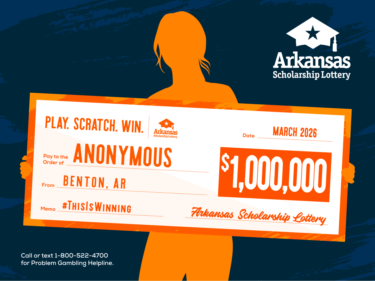 A Benton resident, who has elected to remain anonymous, won a $1 million top prize on Instant Million. She claimed her prize at the Arkansas Scholarship Lottery Claim Center on March 3.