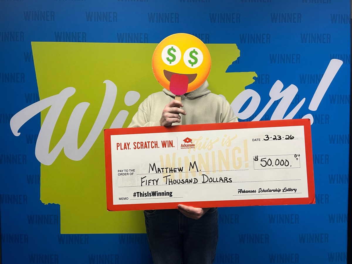 Follow the Arkansas Scholarship Lottery on Facebook, X, formerly known as Twitter, and Instagram. Visit MyArkansasLottery.com for more information on scholarships, winners, games, odds, promotions – and to join The Club for free. To get help with problem gambling, contact the National Problem Gambling Helpline at 1-800-522-4700.