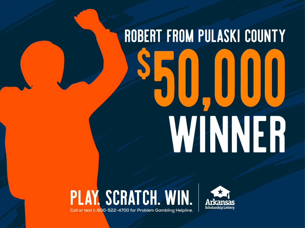 Follow the Arkansas Scholarship Lottery on Facebook, X, formerly known as Twitter, and Instagram. Visit MyArkansasLottery.com for more information on scholarships, winners, games, odds, promotions – and to join The Club for free. To get help with problem gambling, contact the National Problem Gambling Helpline at 1-800-522-4700.