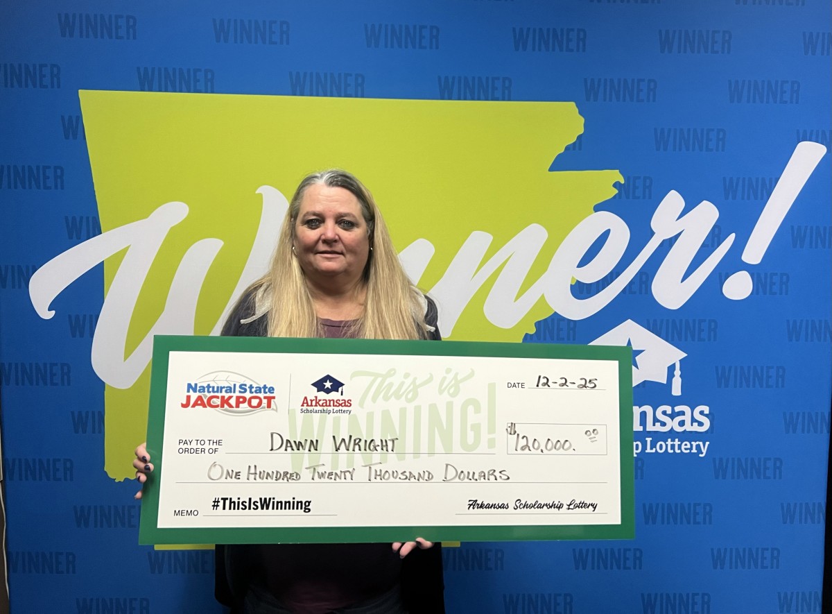 Dawn Wright from Hot Springs won $120,000 in the November 29 Natural State Jackpot drawing.