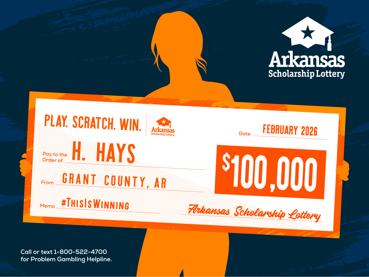 Follow the Arkansas Scholarship Lottery on Facebook, X, formerly known as Twitter, and Instagram. Visit MyArkansasLottery.com for more information on scholarships, winners, games, odds, promotions – and to join The Club for free. To get help with problem gambling, contact the National Problem Gambling Helpline at 1-800-522-4700.